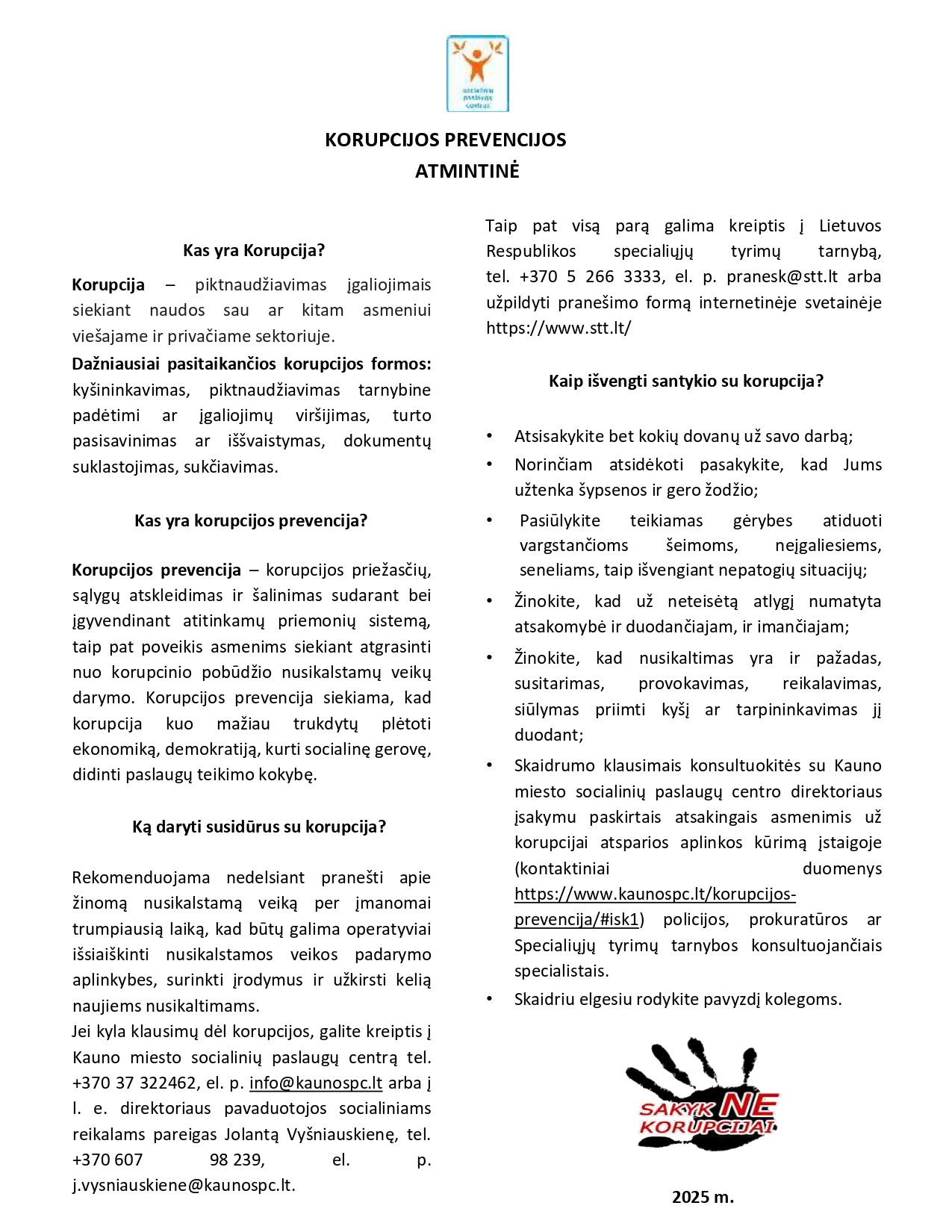 Kauno miesto socialinių paslaugų centro korupcijos prevencijos 2025-2026 m. programa